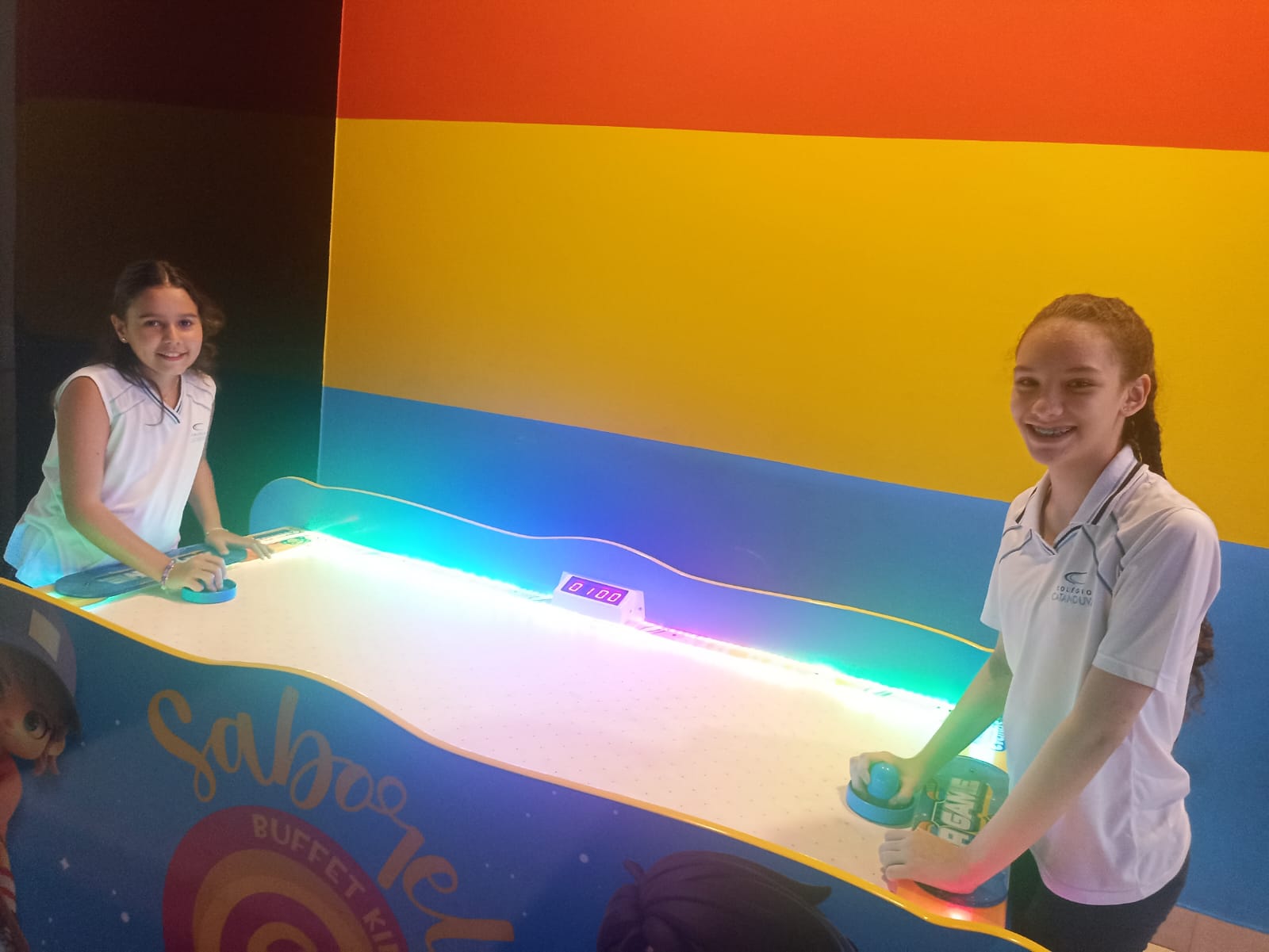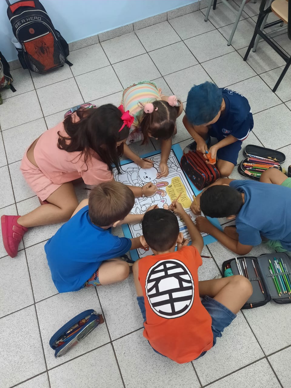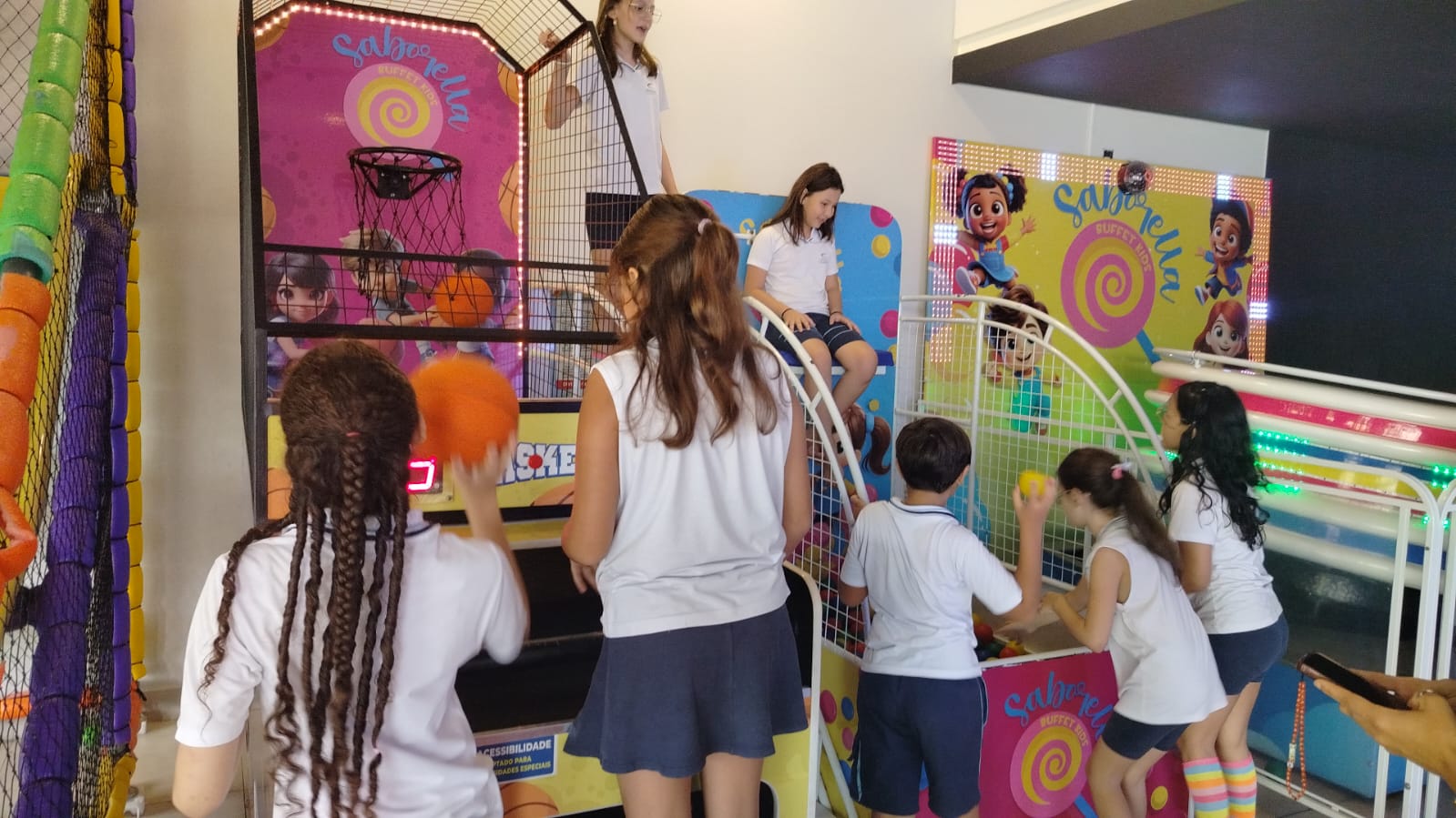 Já no dia 8 de outubro, a Educação Infantil viveu o “Dia das Meias Malucas e Sessão Cinema”, com o tema “No mundo da imaginação!”. As crianças usaram meias diferentes e coloridas, participaram de um desfile lúdico com música, contação de histórias com fantoches e uma sessão de cinema com pipoca. No mesmo dia, os alunos do 1º ao 3º ano do Ensino Fundamental celebraram o “Dia das Cores e da Alegria”, vestindo roupas com suas cores favoritas, enquanto as turmas do 4º e 5º ano retornaram ao Buffet Saborella para mais um dia de diversão.